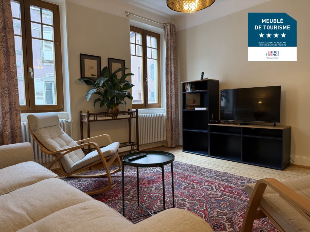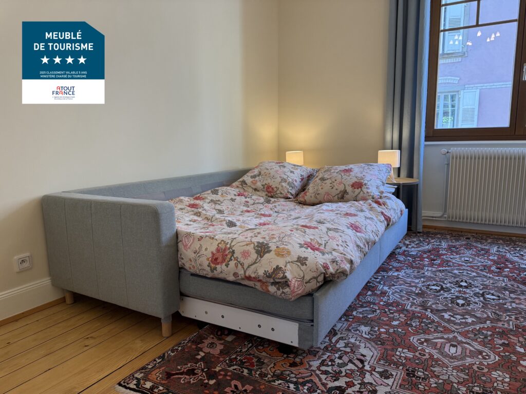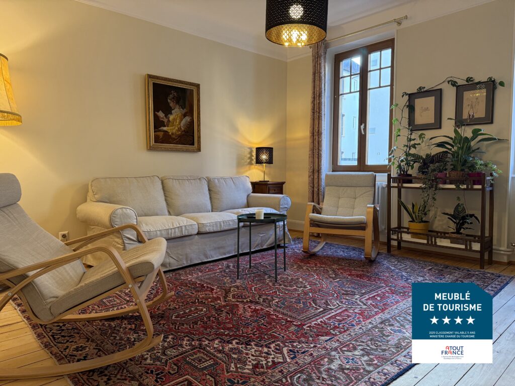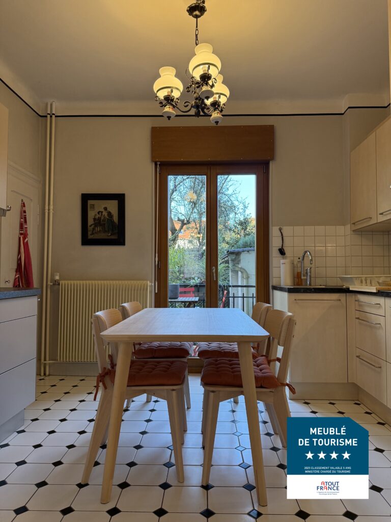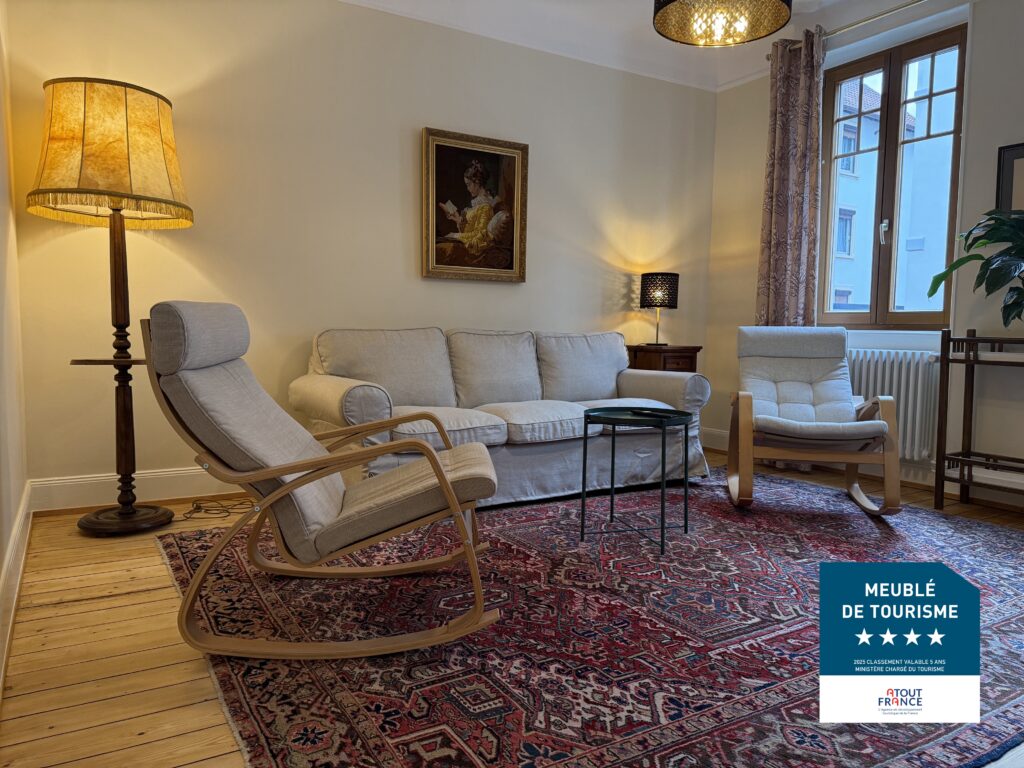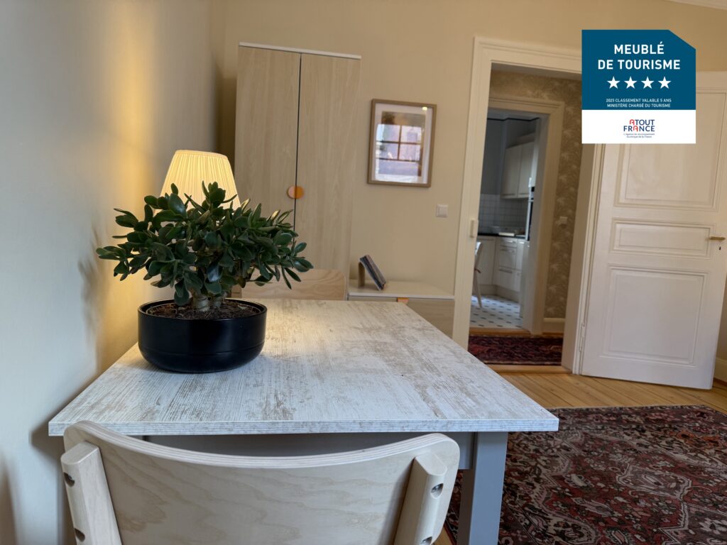 Nous mettons à votre disposition aux portes de Strasbourg un appartement meublé de tourisme, classé 4 étoiles (en Novembre 2025), de 66 m2, pour 1 à 4 personnes, situé à 2 minutes à pieds de la gare de Bischheim.